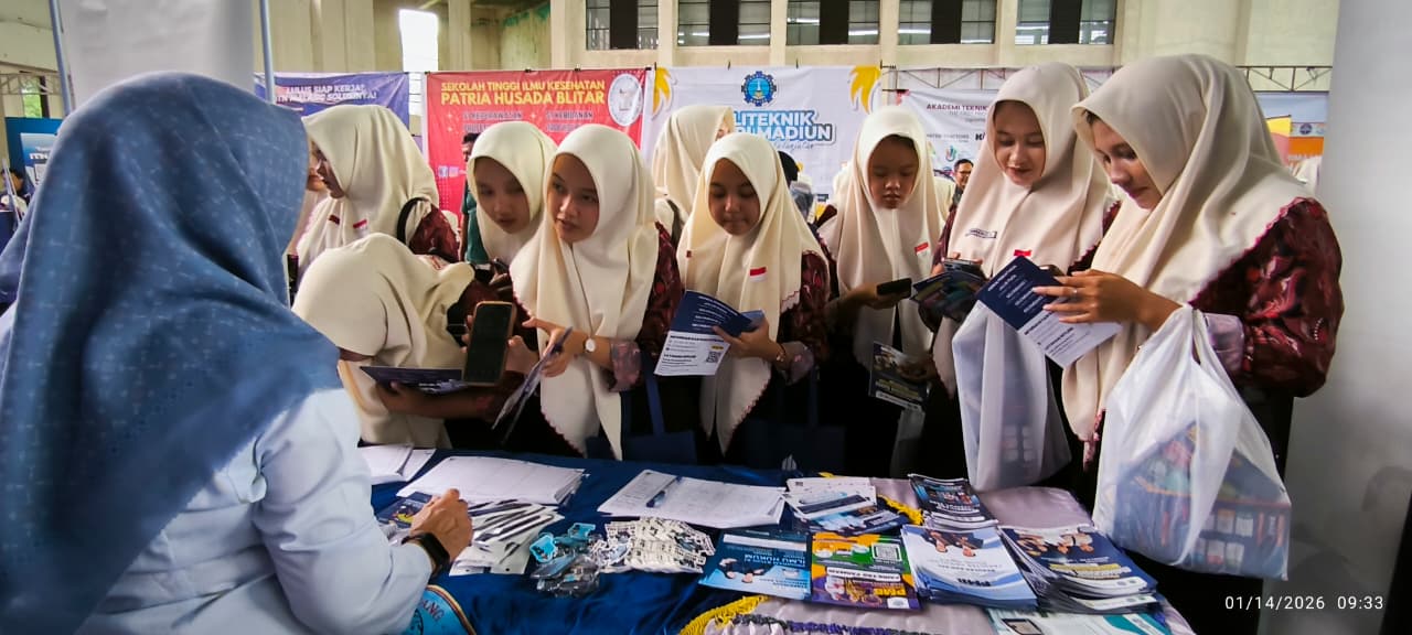 PRI..com Nganjuk — Universitas Hang Tuah (UHT) berpartisipasi aktif dalam kegiatan Edufair MGBK SMA, SMK, dan MA se-Kabupaten Nganjuk yang diselenggarakan pada Rabu, 14 Januari 2026, bertempat di GOR Bung Karno, Jl. Barito, Kabupaten Nganjuk. Kegiatan pameran pendidikan ini diikuti oleh 61 peserta yang terdiri atas perguruan tinggi swasta, negeri serta lembaga bimbingan belajar, dan dihadiri oleh ribuan siswa-siswi SMA, SMK, dan MA se-Kabupaten Nganjuk.